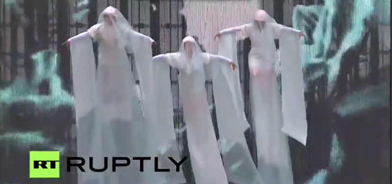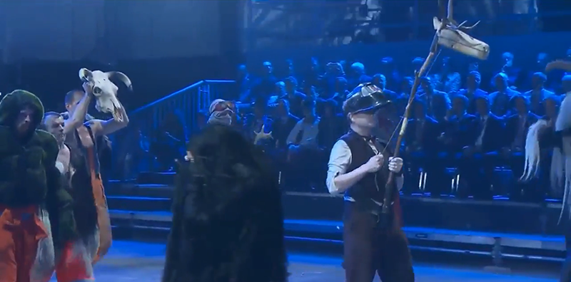 O show perturbador foi orquestrado pelo diretor alemão Volker Hesse, em que um homem vestido como um bode presidiu um estranho ritual.